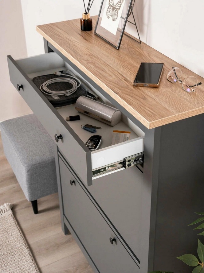 ფეხსაცმლის კარადა SAGA MDF ნაცრისფერი/კრემისფერი
